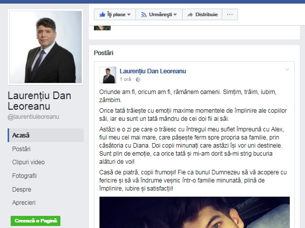 În urmă cu o oră, Leoreanu a postat pe contul de facebook următorul mesaj: