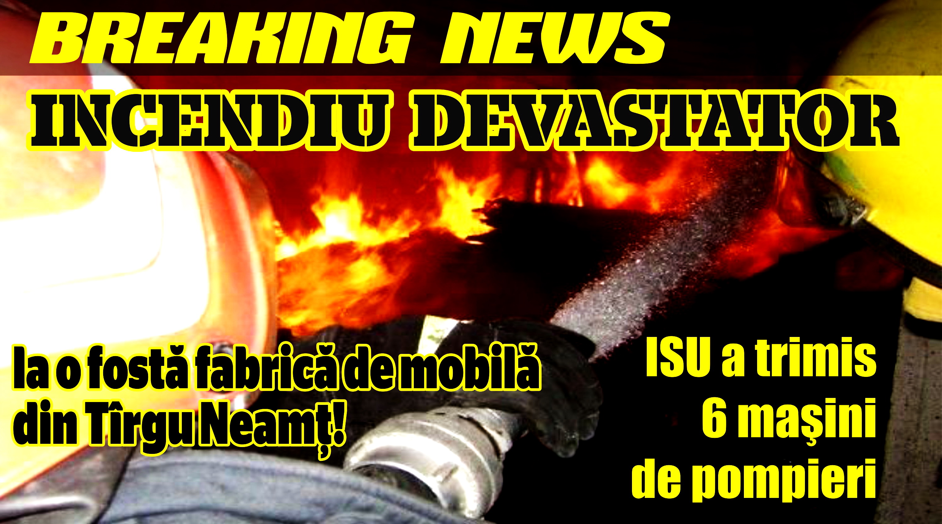 Un incendiu de proporţii a fost anunţat la 112 în urmă cu mai bine de o oră. Arde o hală de la fosta Fabrică de Mobilă din Tîrgu Neamţ, de pe strada Radu Teoharie.